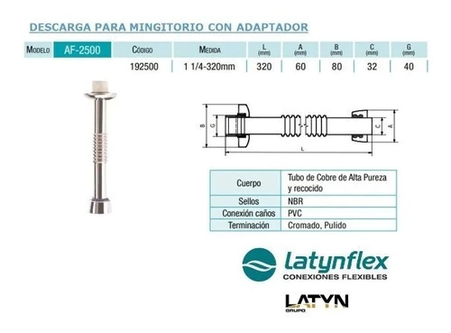Descarga Cromo Para Salida De Mingitorio Latyn Af2500