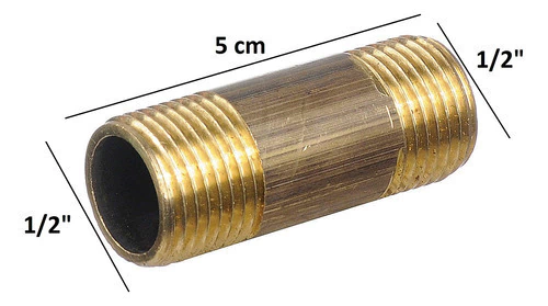 Entrerrosca Niple De Bronce Macho De 1/2 X 5 Cm Agua