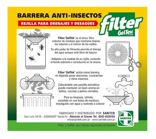 Filter Geltek impide el paso de alacranes, cucarachas y cualquier insecto que habita en los drenajes.