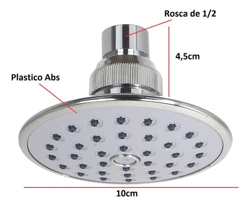 Flor Ducha Redonda Lluvia Abs Anticalcarea Duchador 10cm Chata