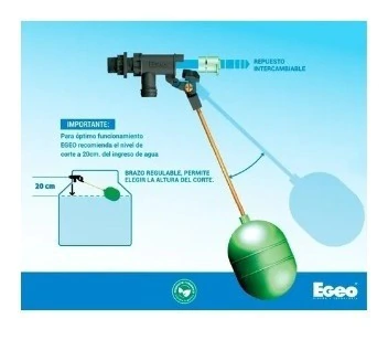 FLOTANTE PARA TANQUE EGEO DE PLÁSTICO ALTA Y BAJA PRESIÓN DE 1/2" CON BOYA