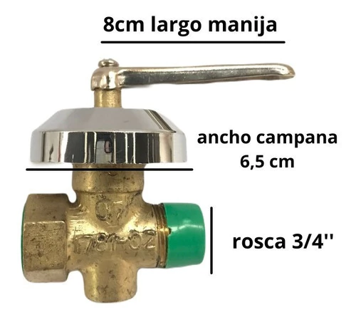 Llave De Paso Gas Esférica de 3/4 Con Campana Bronce Aprobada