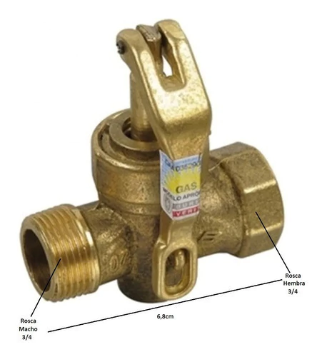 Llave Para Gas Candado 3/4 Macho Hembra Bronce Aprobado