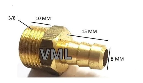 Teton Macho 3/8 Bronce Con Espiga Para Manguera de 8 mm Pack x4 Unid